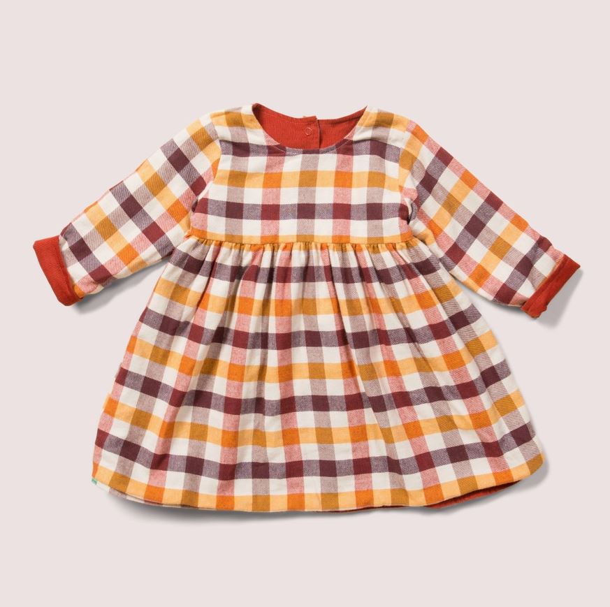 Twice as nice. This reversible dress has soft double cloth on one side (with some little pockets on the front) and soft brushed cotton on the reverse, so you get two styles in one!